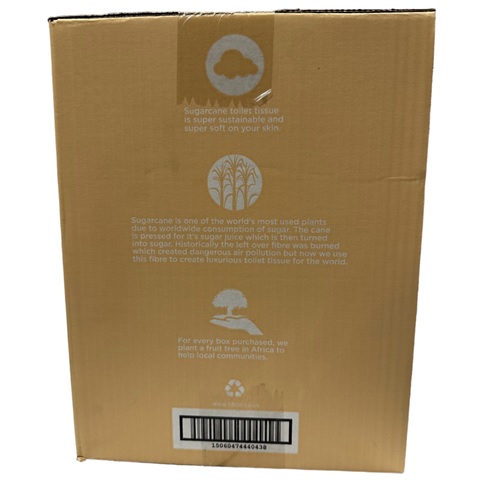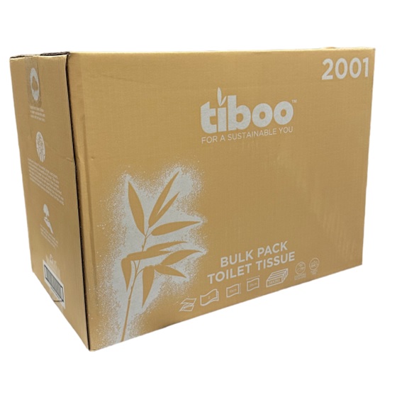 Tiboo Sustainable 2ply Bulk Pack toilet tissue.  Tiboo Bulk Pack is made from Sugar cane, which is super sustainable and soft on your skin.
