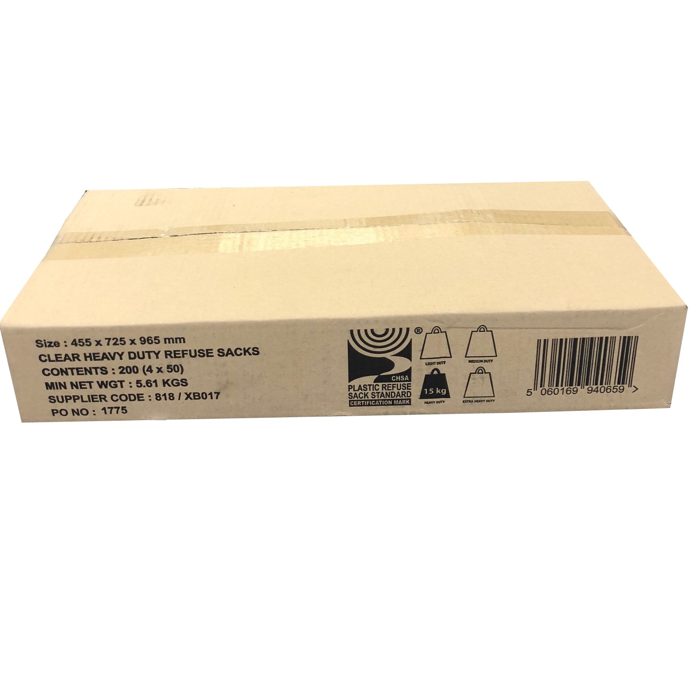 Heavy Duty Clear Refuse Sacks 18x29x39 15kg (case of 200)