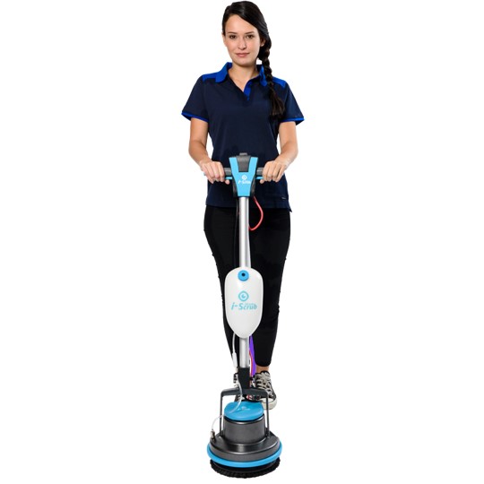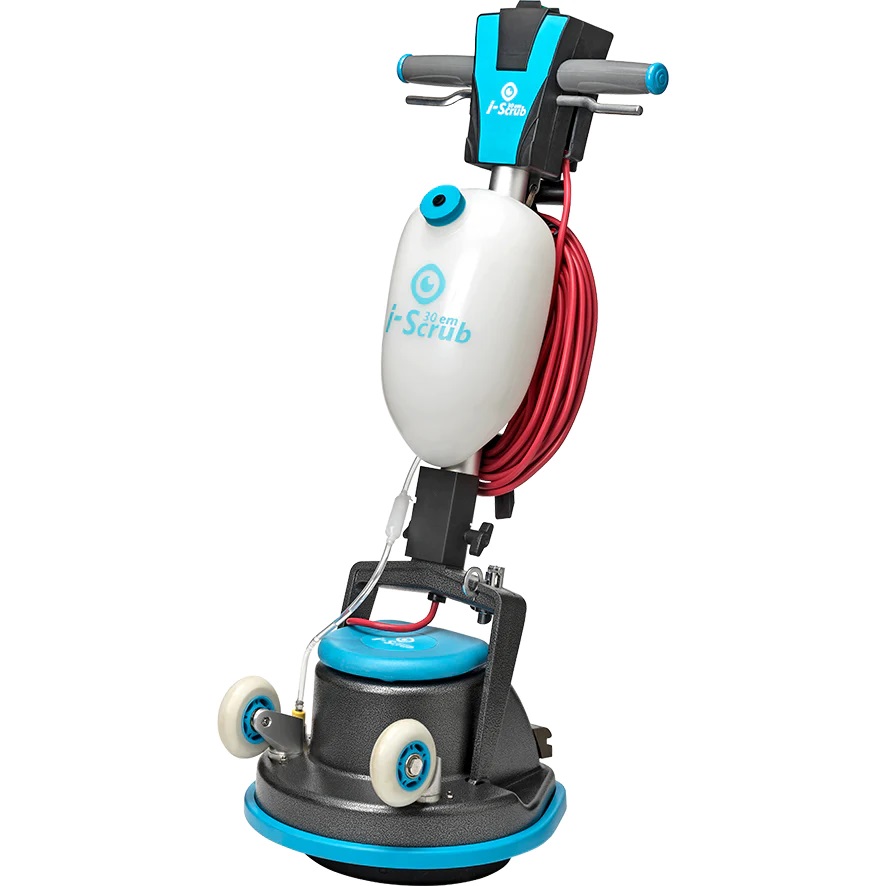 The I-SCRUB 30EM is a powerful, revolutionary rotary scrubbing machine from the makers of I-MOP, which is compact enough even to clean stairs. Its 300mm drive surface incorporates a range of pads and brushes, oscillating at 175rpm without splashing, while its tough, aluminium casing and rubber bumper design protects furniture.