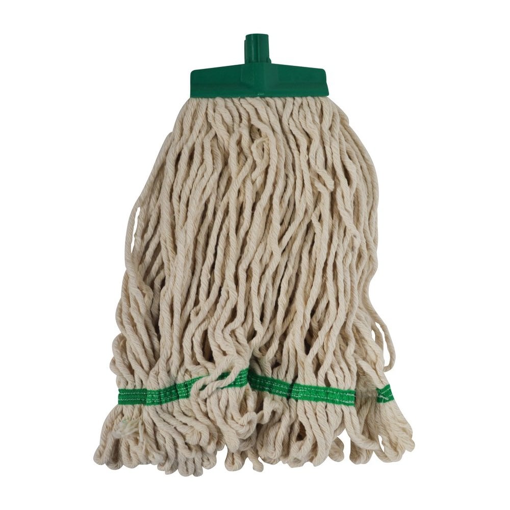 The traditional mop head has a stay-flat cut edge finish, so it can efficiently sweep up and remove debris from most hard floors - perfect for handling the mess in front or back of house after a busy day's service.