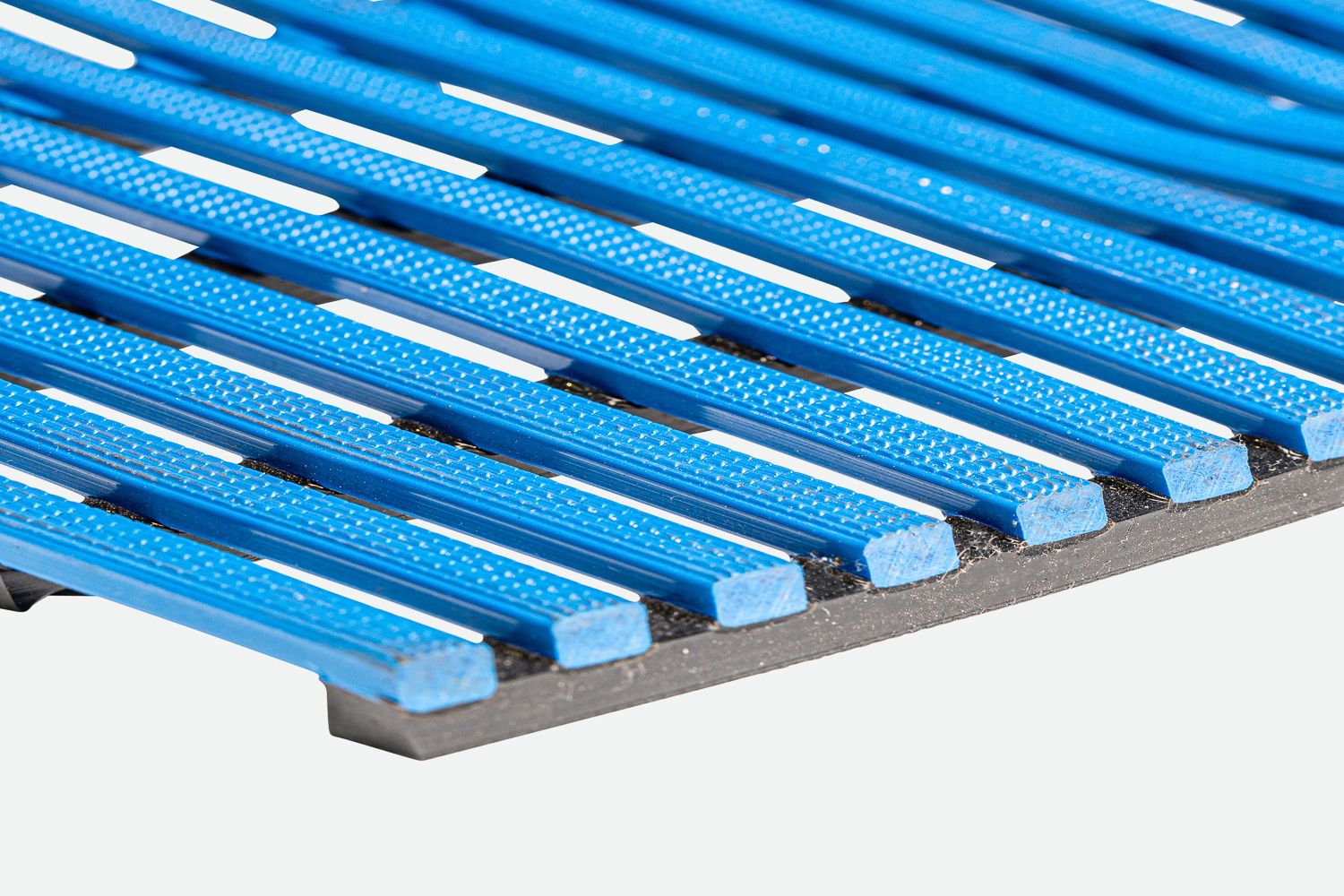 Interflex is a versatile, slip resistant mat designed to endure heavy foot traffic. Suitable for wet areas like swimming pools, changing rooms, and various other sport and leisure facilities, as well as industrial, construction and catering environments with slip hazards. Made from durable, non-porous PVC with channelled underbars, it efficiently self-drains large volumes of water, oil, grease, or chemicals. The embossed surface provides superior grip while the anti-microbial and anti-fungal additives ensure excellent hygiene. Interflex also offers excellent sound absorption. Connector clips are available for side or end joining to achieve the or fit.