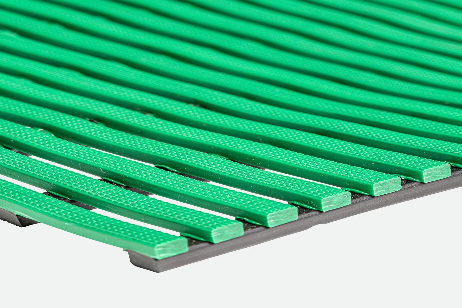 Interflex is a versatile, slip resistant mat designed to endure heavy foot traffic. Suitable for wet areas like swimming pools, changing rooms, and various other sport and leisure facilities, as well as industrial, construction and catering environments with slip hazards. Made from durable, non-porous PVC with channelled underbars, it efficiently self-drains large volumes of water, oil, grease, or chemicals. The embossed surface provides superior grip while the anti-microbial and anti-fungal additives ensure excellent hygiene. Interflex also offers excellent sound absorption. Connector clips are available for side or end joining to achieve the or fit.
