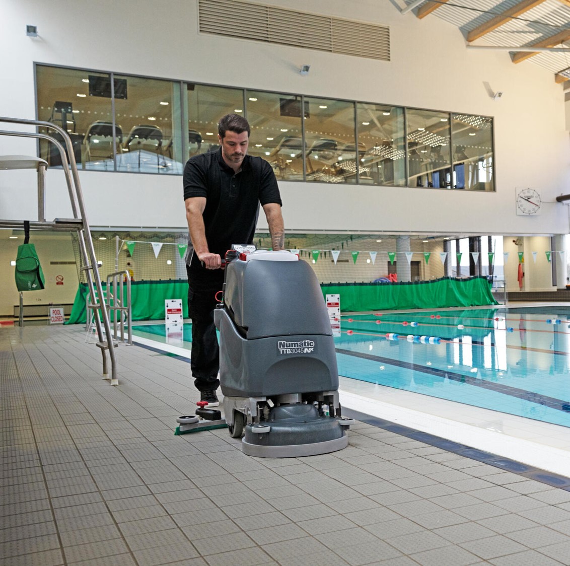 The Numatic TTB3045NX lithium battery scrubber dryer features two NX300 lithium rapid charge batteries, 30L solution tank and 45cm cleaning width.