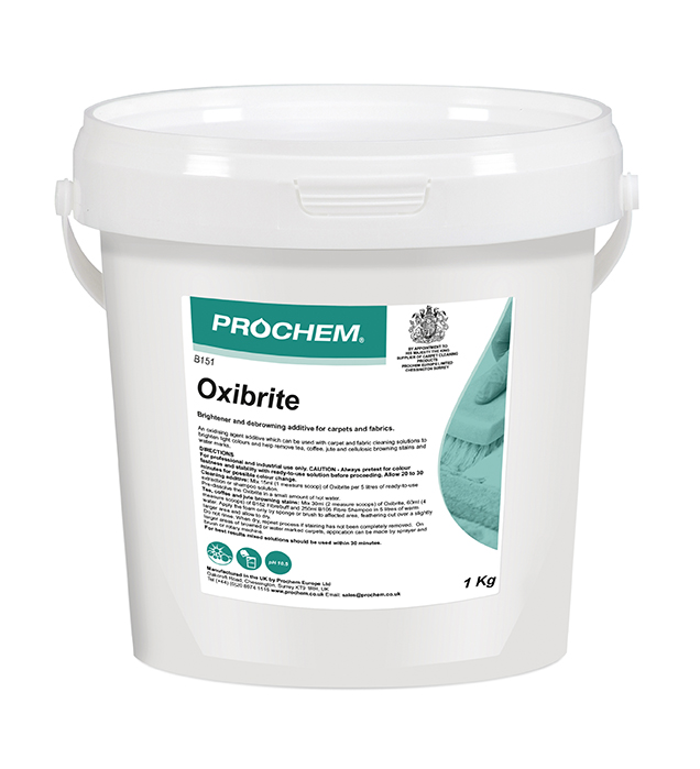 DIRECTIONS FOR USE: Use in conjunction with PROCHEM OXIBRITE and PREMIUM FIBRE SHAMPOO at a rate of 2:1:8 respectively, per 5 litres of hot water. Apply using a rotary machine or sprayer, then brush and leave to dry - do not extract.