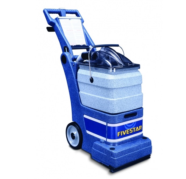 The FIVESTAR features a patented 11.3-litre recovery tank which simply lifts out for easy emptying, as well as an 11.3-litre solution tank; a see-through recovery dome assists with monitoring extracted liquid. Other features include two 7" non-marking wheels, an adjustable handle, and 12" cleaning width, with a side extension for skirting board cleaning.