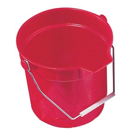 The ROUND 10-LITRE BUCKET WITH LIP features a useful, wide pouring spout and a strong metal handle with a plastic grip for comfort.