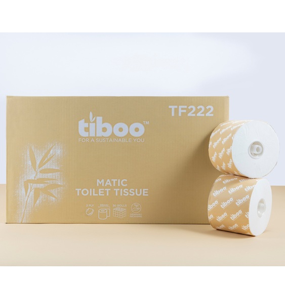 Tiboo Sugarcane Matic Toilet Rolls are eco-friendly, yet cost-effective system toilet rolls ideal for schools and offices. It is whiter and softer with a premium feel and breaks down upon contact with water much quicker than other types of paper. The Tiboo Matic Toilet rolls will fit various Matic type dispensers, such as Pendimatic, Jangromatic and Katrin System Toilet Roll dispensers.