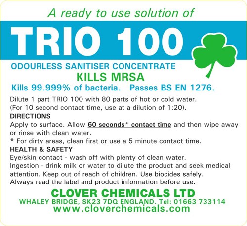 Free of charge, we supply labels for all CLOVER CHEMICALS products, for decanting into trigger spray bottles.
