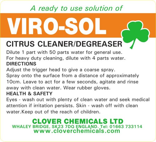 Free of charge, we supply labels for all CLOVER CHEMICALS products, for decanting into trigger spray bottles.